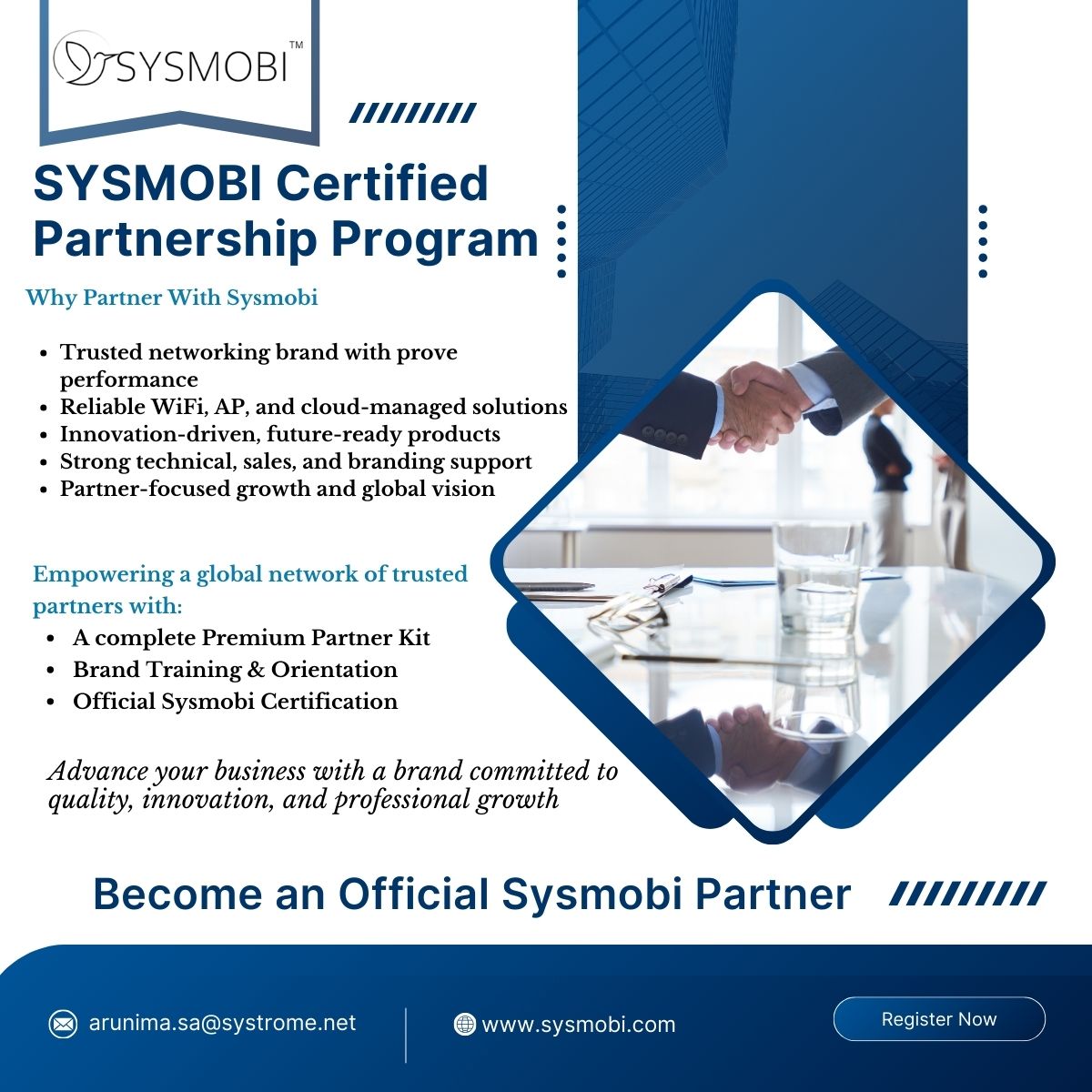 Register With UsJoin hands with Sysmobi and deliver reliable, future-ready networking solutions to your customers.